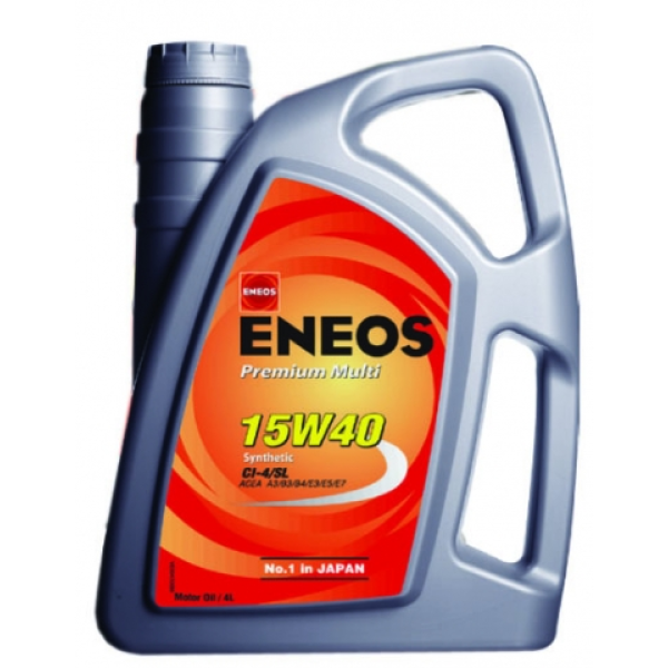 Az ENEOS Premium Multi 15W-40 rész-szintetikus motorolaj benzines, LPG és dízel motorok katalizátorral illetve turbóval vagy anélkül szerelt változataikhoz. A legújabb fogyasztási és kipufogógáz kibocsájtási normáknak megfelelően lett kifejlesztve. Megfelel a jelenleg érvényben lévő Japán, amerikai és európai benzines és dízel motorokkal szemben támasztott minőségi követelménynek. Különösen alkalmas a modern nehéz haszonjárművek közös csöves turbófeltöltéses dízelmotorjaihoz. Olaj típus: Rész-szintetikus motorolaj.