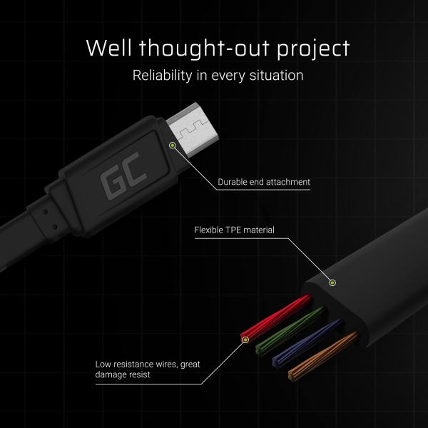 GREEN CELL MICRO USB TÖLTŐKÁBEL 25 CM GYORSTÖLTÉSI TÁMOGATÁSSAL